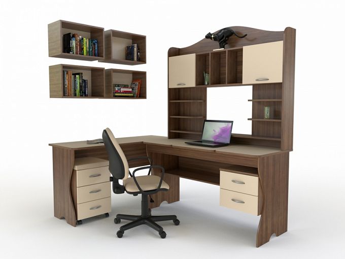 Угловой компьютерный стол Лисса BMS позволит рационально подойти к организации рабочего места. Многофункциональная композиция включает в себя компьютерный стол с выдвижными ящиками и надстройкой, которая сэкономит пространство и разместит необходимые для учебы или работы материалы в зоне быстрого доступа, приставной письменный стол, мобильную тумбу-пуф с мягкой обивкой и навесные книжные полки. Опоры столов устойчивы, что делает модель подходящей для школьников. Купить угловой компьютерный стол Лисса BMS с учетом необходимых параметров приглашаем в наш интернет-магазин.