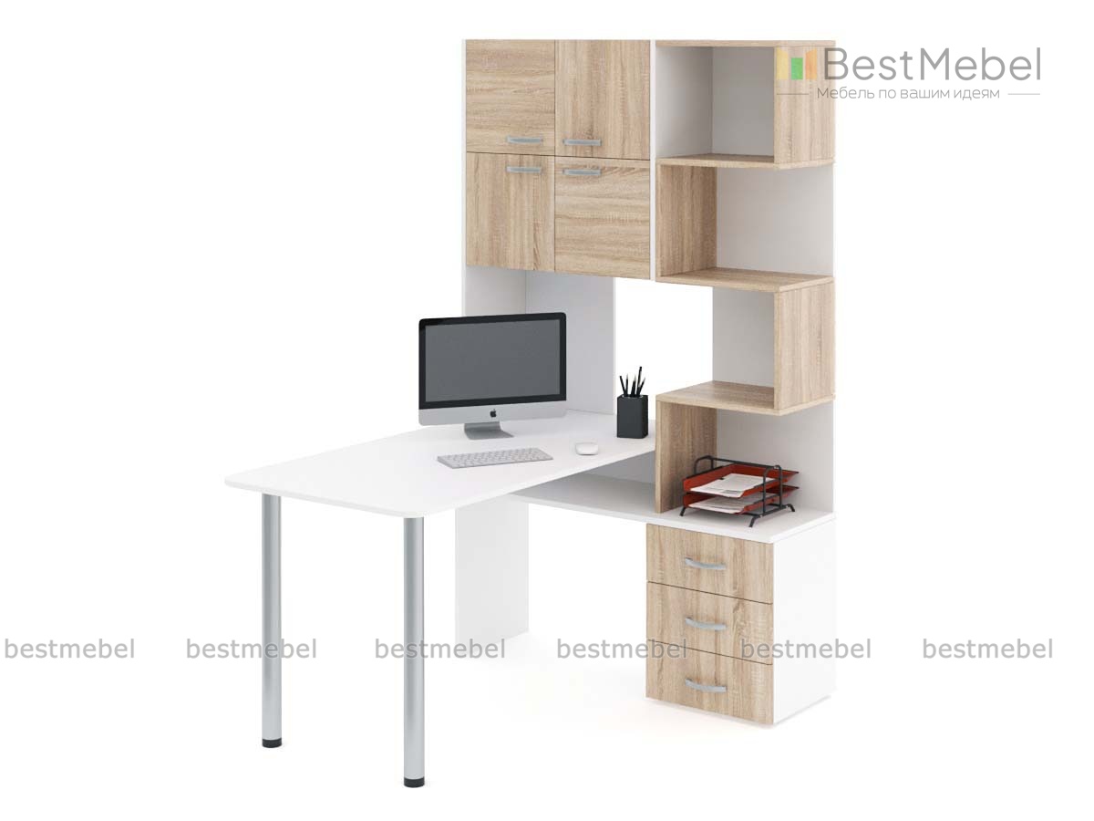 Необычный дизайн и функциональность компьютерного стола Лорел 5 BMS сразу привлекают внимание. Угловая конструкция практична и по максимуму использует свободное пространство. Эргономичная столешница на металлических опорах скомбинирована с вместительным высоким стеллажом. В выдвижных ящиках тумбы удобно разместятся канцелярские принадлежности и прочие мелочи. Расположенные змейкой, контрастные открытые полки удобны для книг и интерьерных украшений.