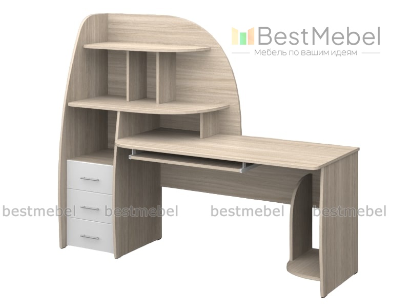 Компьютерный стол МБ 25.1 BMS порадует владельца креативным дизайном и актуальными расцветками. Современная модель прекрасно впишется в интерьер молодежных комнат и обеспечит комфортную работу и учебу. Стол оборудован широкой столешницей с выдвижной полочкой для клавиатуры, отделением под системный блок, тумбой с выдвижными ящиками и оригинальной надстройкой. Стильные детали – скругленные задняя панель и боковина. Купить компьютерный стол МБ 25.1 BMS из эффектной глянцевой серии приглашаем по лучшей цене в наш интернет-магазин.