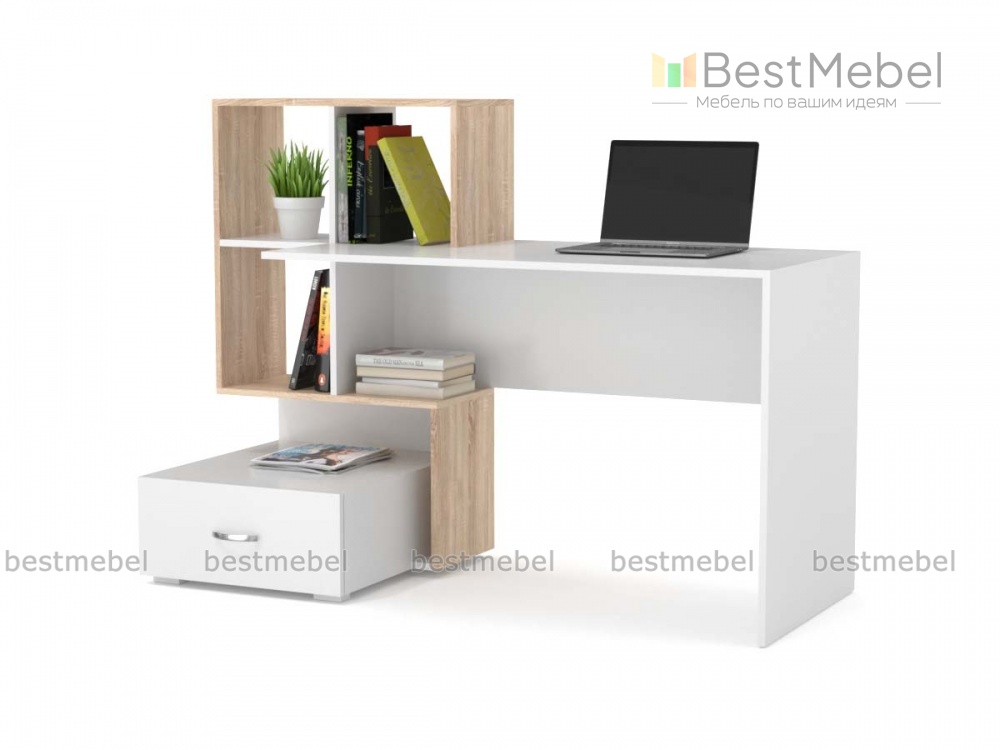 Стол компьютерный Феникс 11 BMS гармонично вписывается в интерьер современной городской квартиры. Выполненная в сочетании белого и светлых древесных тонов, модель сочетает в себе стильный минимализм и функциональность. Стол с просторной прямоугольной столешницей оборудован открытыми секциями для размещения книг и декоративных мелочей, а также нишей и тумбой с выдвижным ящиком. Купить стол компьютерный Феникс 11 BMS и оборудовать комфортное рабочее место вам всегда поможет наш интернет-магазин.