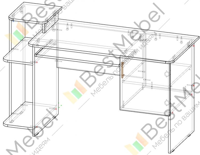 Изящный и очень нарядный стол компьютерный Myau СКМ-3 BMS не только украсит любое помещение, но и принесет радость от использования. За ним приятно находится, он обладает всеми опциями, необходимыми для результативной работы и грамотного хранения нужных вещей. На подставке, размещенной над рабочей поверхностью, устанавливается монитор, в отдельном отсеке есть место для системного блока, выкатывающаяся полочка предназначена для клавиатуры, а небольшой элегантный шкафчик, закрывающийся распашной дверцей, удобен для важных документов. Качественная отделка всех элементов, тщательная обработка кромок, красивая фурнитура, белоснежный оттенок придают изделию богатый вид. Заказать изготовление недорогой модели приглашаем на нашем сайте.