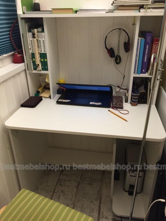 Стол хорошего качества, хорошо вписывается в интерьер. Из плюсов имеет удобную нишу под компьютер, полки достаточной глубины и высоты даже для книг формата а4 и подставку для ног. Минусов пока вообще не заметили)