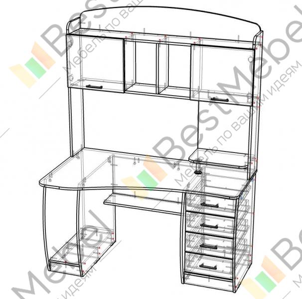 Стол компьютерный СК-45 BMS отличается простым, но оригинальным дизайном, надежной конструкцией и функциональностью. Модель со скругленными боковинами легко впишется в офисный и домашний интерьер и поможет оборудовать комфортное рабочее место. Эргономичная столешница дополнена полочкой на хромированной опоре, классической тумбой с выдвижными ящиками, отделением под системный блок и полкой для бумаг. Надстройка с антресолью из открытых полок и двух распашных отделений удобна для книг и документов. Купить стол компьютерный СК-45 BMS вы сможете в нашем интернет-магазине, подобрав оптимальную расцветку.