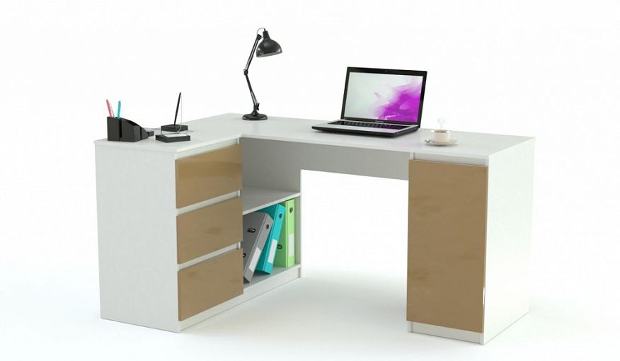 Угловой компьютерный стол Элен 10 BMS привлекает необыкновенной визуальной легкостью и функциональностью. Белоснежная модель с пастельными глянцевыми фасадами поможет создать эффектный интерьер в стиле минимализм. Компактный столик оборудован угловой столешницей и двумя тумбами – классической распашной и широкой, с выдвижными ящиками и нишами под канцелярские мелочи, бумаги и оргтехнику. Купить угловой компьютерный стол Элен 10 BMS приглашаем в наш интернет-магазин по лучшей цене.