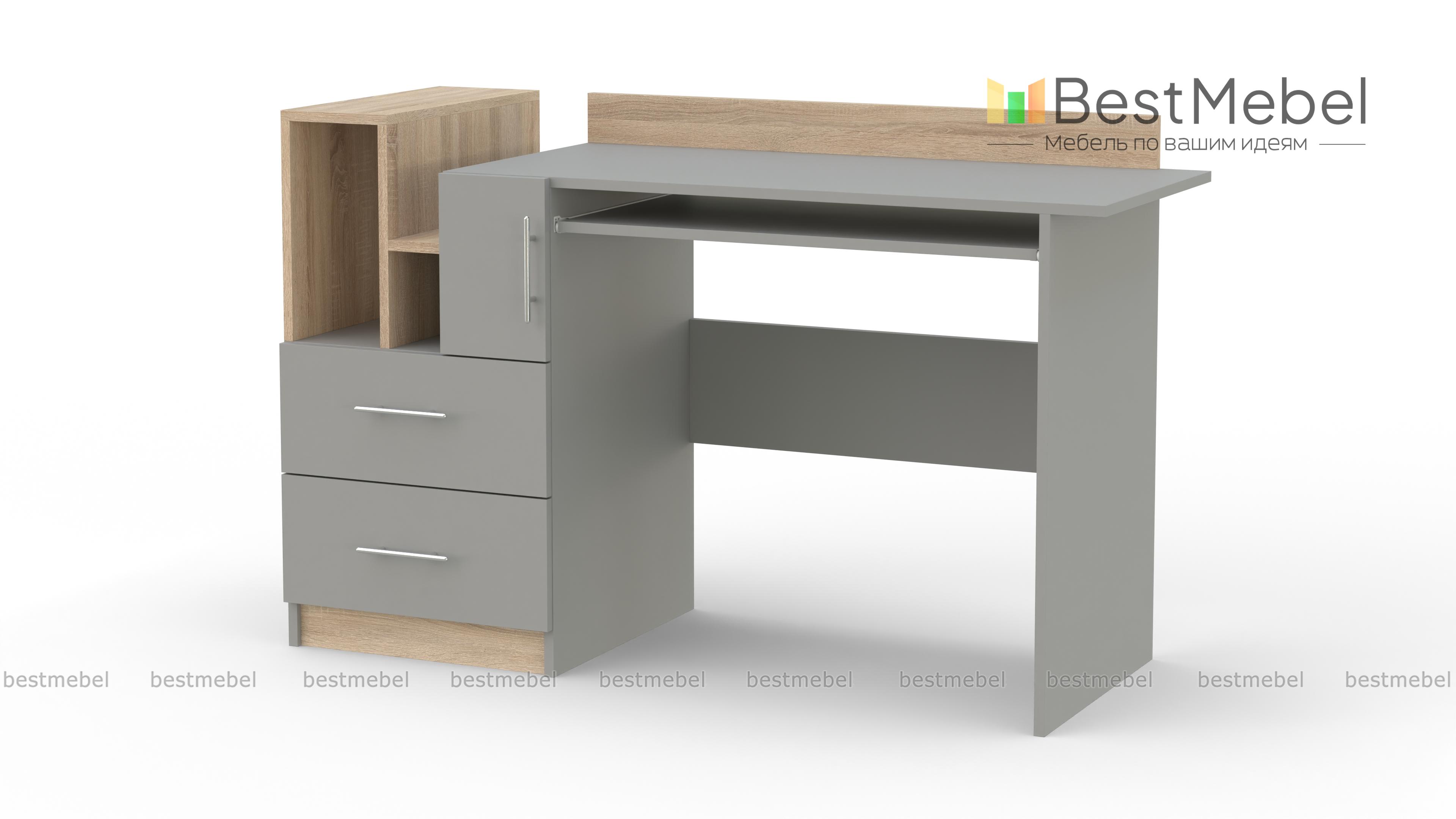 Письменный стол Моби BMS, выполненный в современном стиле, станет идеальным решением для подростковой комнаты. Надежная и функциональная, модель разместит под рукой все необходимое и сделает учебный процесс максимально комфортным. Выполненный в универсальном белом цвете с контрастными древесными вставками, стол оборудован выдвижной полочкой для клавиатуры, распашным отделением, выдвижными ящиками и оригинальными открытыми полками. Купить письменный стол Моби BMS по лучшей цене приглашаем в наш интернет-магазин.