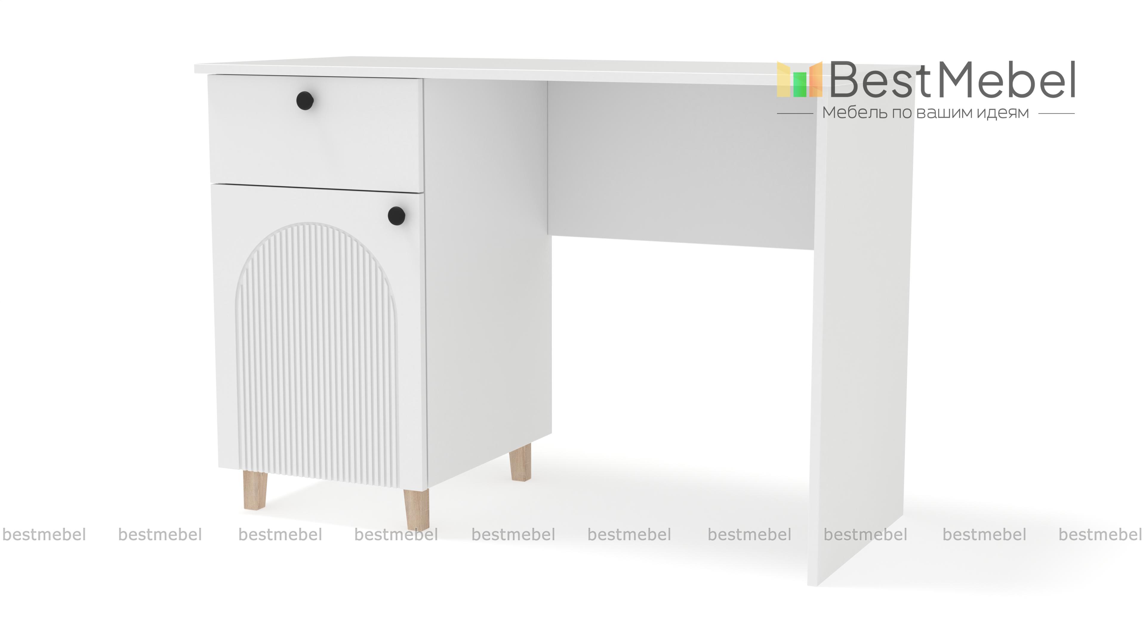 Письменный стол Рене 1 BMS с рифленым фасадом и ножками подходит для меблировки комнаты школьника или кабинета. Выдвижной ящик под столешницей и распашное отделение с полками помогают убрать мелочи, поддерживая порядок на рабочем месте. Благодаря актуальной палитре и стильному рельефу стол гармонично вписывается в современные интерьеры. Купить письменный стол Рене 1 BMS с индивидуальным подбором цвета и размеров вы сможете в нашем интернет-магазине.