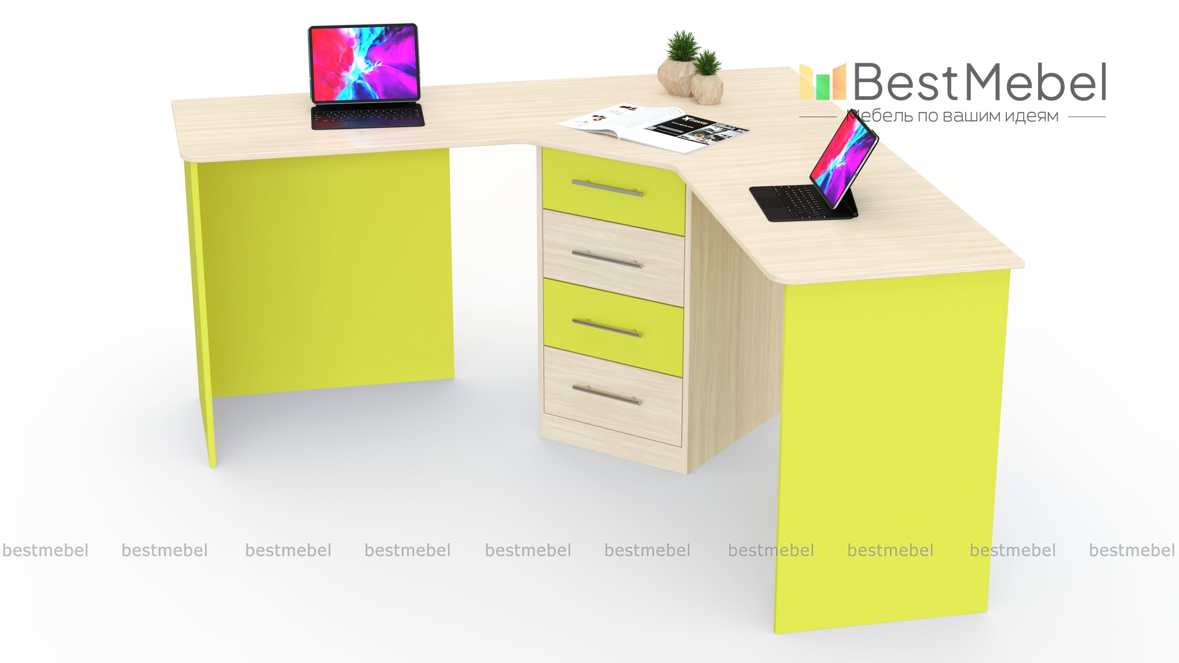 Стол угловой для двоих детей Город 19 BMS – яркая и функциональная модель для современной детской. Стол угловой формы поможет максимально эффективно использовать пространство и легко разместит сразу двоих детей. Модель, выполненная в комфортном сочетании светлых оттенков под массив дерева и цветных вставок, оборудована эргономично вырезанными столешницами и расположенной по центру тумбой с четырьмя выдвижными ящиками для канцелярских принадлежностей. Купить стол угловой для двоих детей Город 19 BMS по лучшей цене приглашаем в наш интернет-магазин.