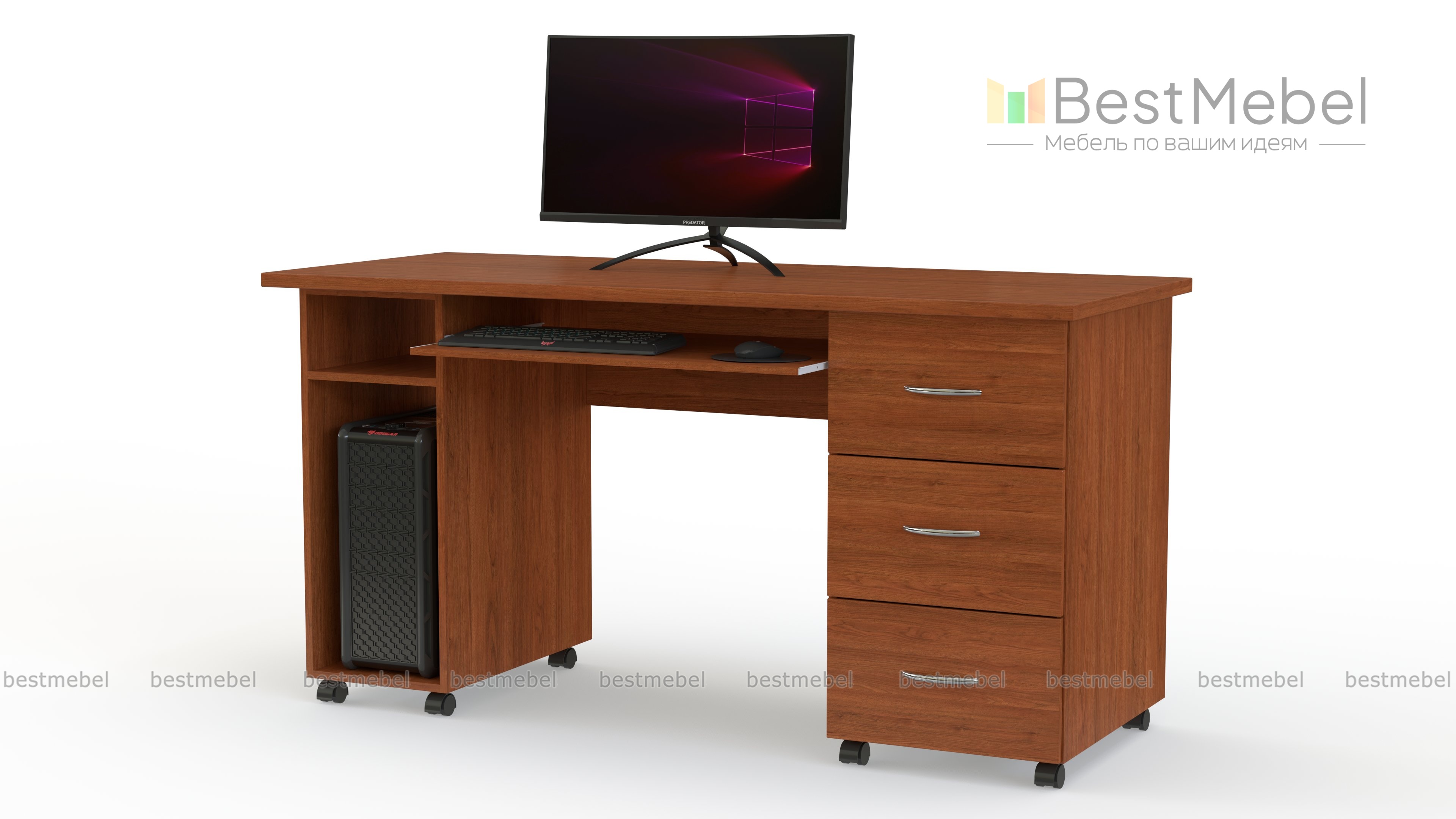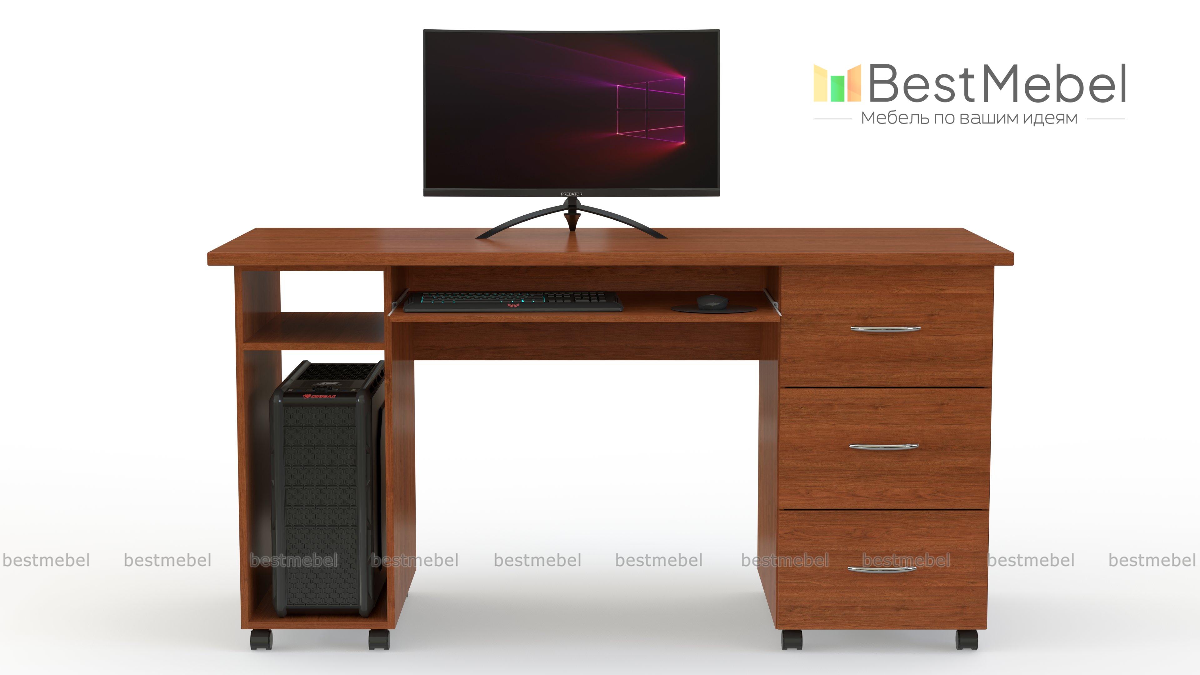 Стол Миф Л-01 BMS оборудован надежными колесными опорами и может легко перемещаться, облегчая перестановку. Классическая модель с просторной прямоугольной столешницей дополнена нишей под системный блок, выдвижной панелью для клавиатуры и тумбой из трех выдвижных ящиков. Универсальная конструкция делает стол подходящим вариантом для письма и работы за компьютером, а древесные оттенки на выбор помогут органично вписаться в меблировку. Купить стол Миф Л-01 BMS вы сможете в нашем интернет-магазине по доступной цене.