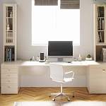 Стол письменный Дания 7 BMS поможет рационально организовать пространство в небольших и узких комнатах. Расположение вдоль окна сэкономит полезную площадь и обеспечит рабочему месту отличную естественную освещенность. Для хранения канцелярских принадлежностей, книг и папок предусмотрены две тумбы – с выдвижными ящиками и распашная, и два застекленных книжных шкафчика с нишами. Купить стол письменный Дания 7 BMS, выполненный в светлых древесных тонах, приглашаем в наш интернет-магазин.
