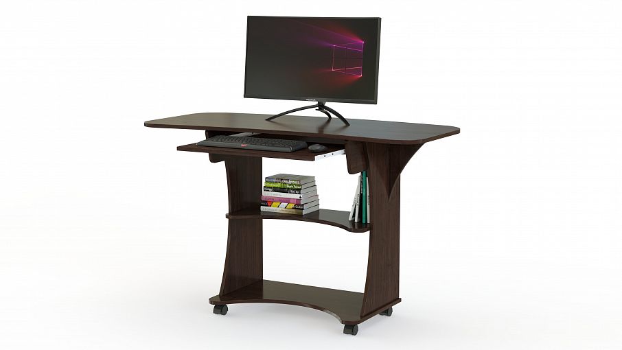 Стол письменный Комбинация 2 BMS будет актуален в небольших помещениях, помогая обустроить рабочее место на минимуме пространства. Широкая, эргономичной формы столешница с выкатной панелью под клавиатуру позволит разместить монитор и письменные принадлежности, а для рабочих материалов и принтера предусмотрены открытые полки. Оборудованное колесиками основание соединяется со столешницей при помощи фигурных боковин. Купить стол письменный Комбинация 2 BMS приглашаем недорого в наш интернет-магазин.