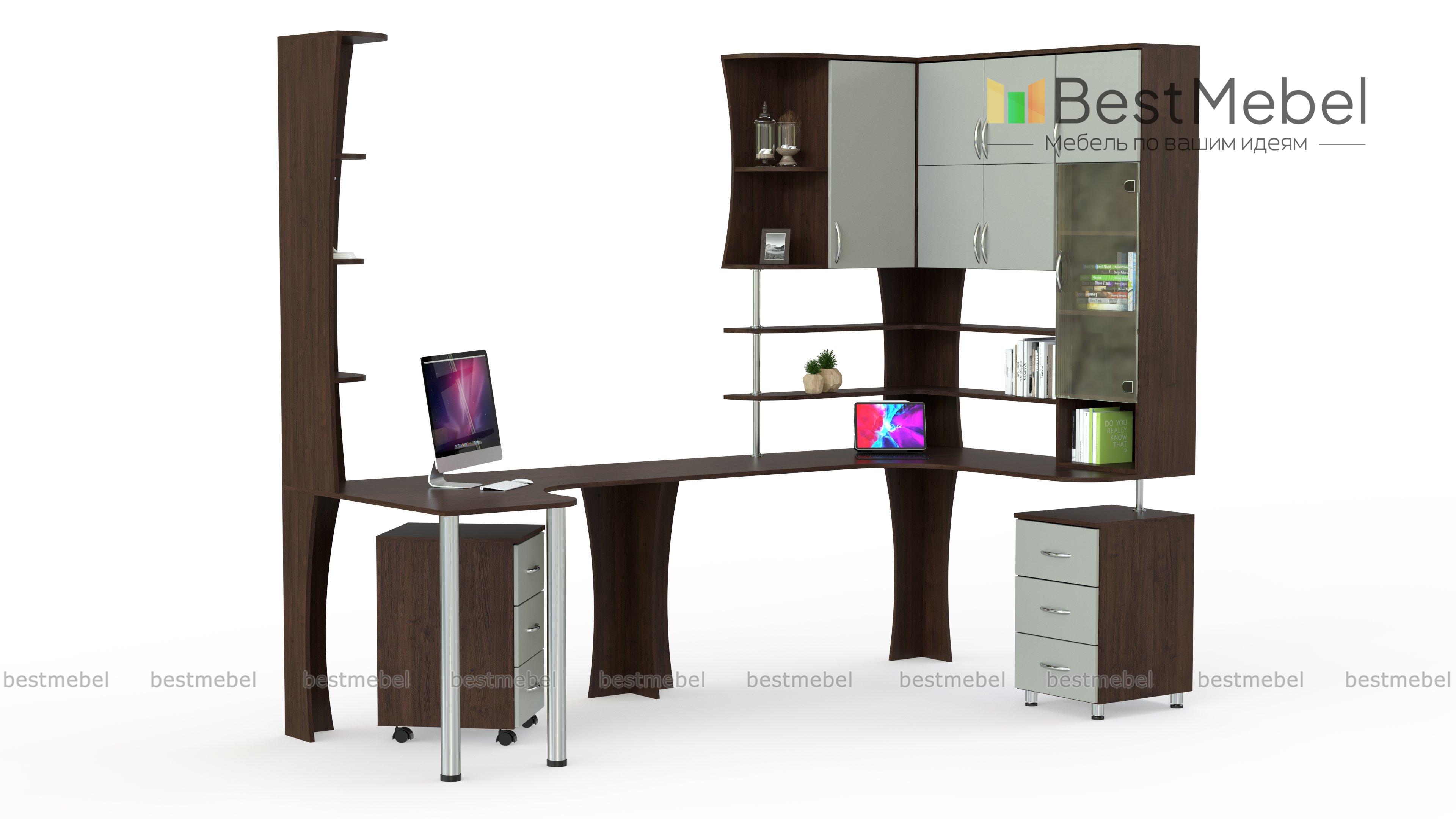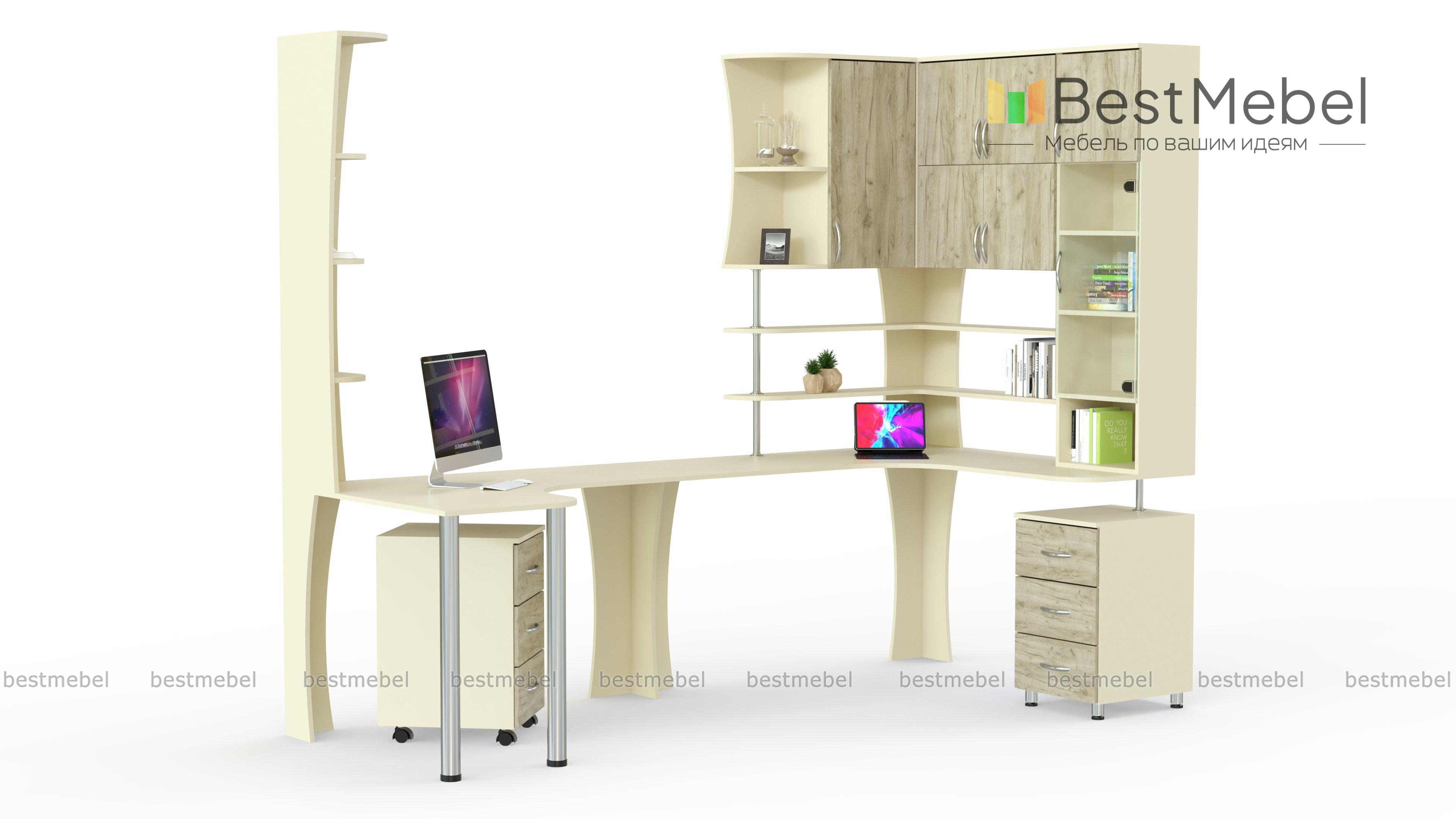 Угловой письменный стол для двоих Фреско 42 BMS представляет собой многофункциональную композицию, включающую в себя все необходимое для комфортной учебы. Расположенная по всей ширине комнаты вдоль окна, модель оборудована эргономично вырезанной столешницей, стационарной и мобильной тумбами с выдвижными ящиками для мелочей, а также надстройками с глухими и открытыми отделениями на хромированных стойках. Купить угловой письменный стол для двоих Фреско 42 BMS вы сможете в нашем интернет-магазине по доступной цене.