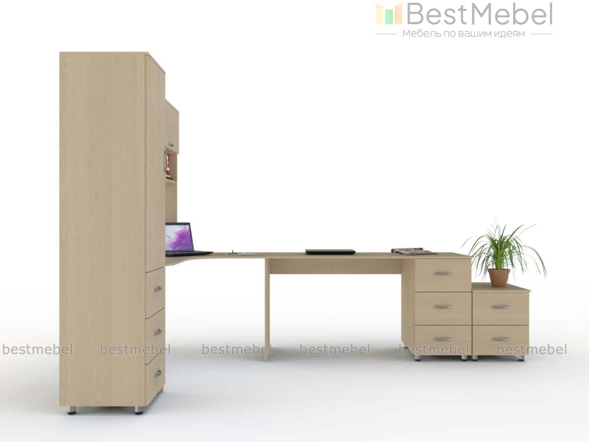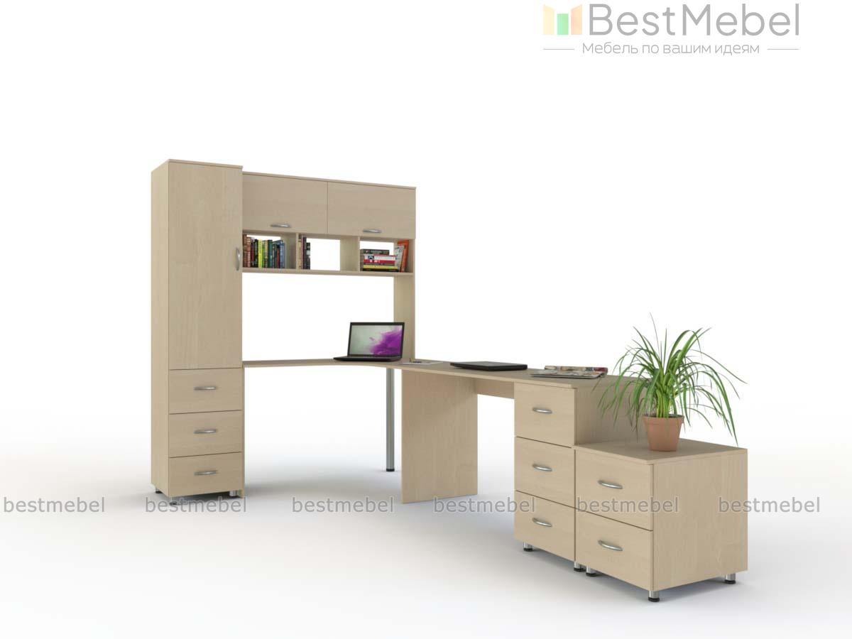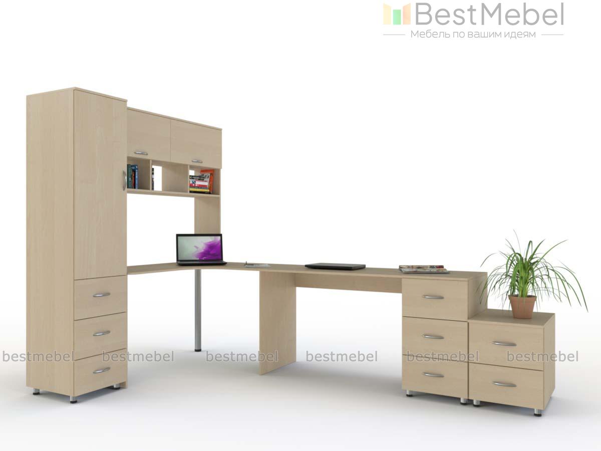 Угловой письменный стол для двоих Нико 82 BMS дополнен удобной системой хранения, которая поможет разместить все необходимые учебные материалы, канцелярские мелочи и многое другое. Модель оборудована Г-образной столешницей, тумбой с выдвижными ящиками, надстройкой с книжными полками и комбинированным пеналом. Лаконичный и выполненный в светлых древесных тонах, стол легко впишется в интерьер современной детской или молодежной комнаты. Купить угловой письменный стол для двоих Нико 82 BMS приглашаем в наш интернет-магазин по доступной цене.