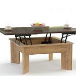 Стол журнальный Диана 11 BMS может выполнять функции обеденного или рабочего благодаря подъемному механизму столешницы. Рабочая поверхность не только поднимается, но и увеличивается в ширину, позволяя разместить ноутбук, настольные игры и все необходимое для сервировки. Столик с широкими, расположенными под углом опорами выполнен в контрастных древесных тонах, края столешницы безопасно скруглены. Купить стол журнальный Диана 11 BMS для современной гостиной или офисного интерьера вы сможете в нашем интернет-магазине.