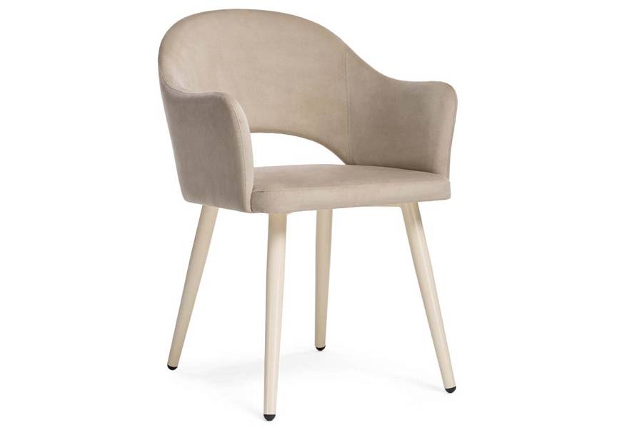 Стул Апри выглядит необыкновенно уютным и комфортным в нежной обивке из велюра. Мягкое сиденье с декоративным вырезом оборудовано изящно скругленной спинкой, плавно переходящей в подлокотники. Эффектный контраст с обивкой составляют легкие и прочные металлические ножки, дополненные пластиковыми протекторами для защиты напольного покрытия. Купить стул Апри для меблировки кафе, гостиной или современной кухни вы сможете выгодно в нашем интернет-магазине.