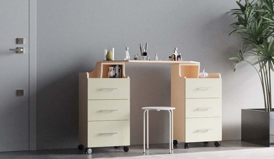 Маникюрный стол Амина BMS предназначен специально для меблировки салонов красоты, отличаясь компактными размерами и эргономичной формой. Изогнутая и скошенная по углам столешница позволит с комфортом разместиться мастеру и клиенту, а для хранения в зоне быстрого доступа необходимых в работе материалов и инструментов предусмотрены две тумбы с выдвижными ящиками и нишами. Мобильность столику обеспечат надежные колесные опоры. Купить маникюрный стол Амина BMS вы всегда сможете в нашем интернет-магазине.