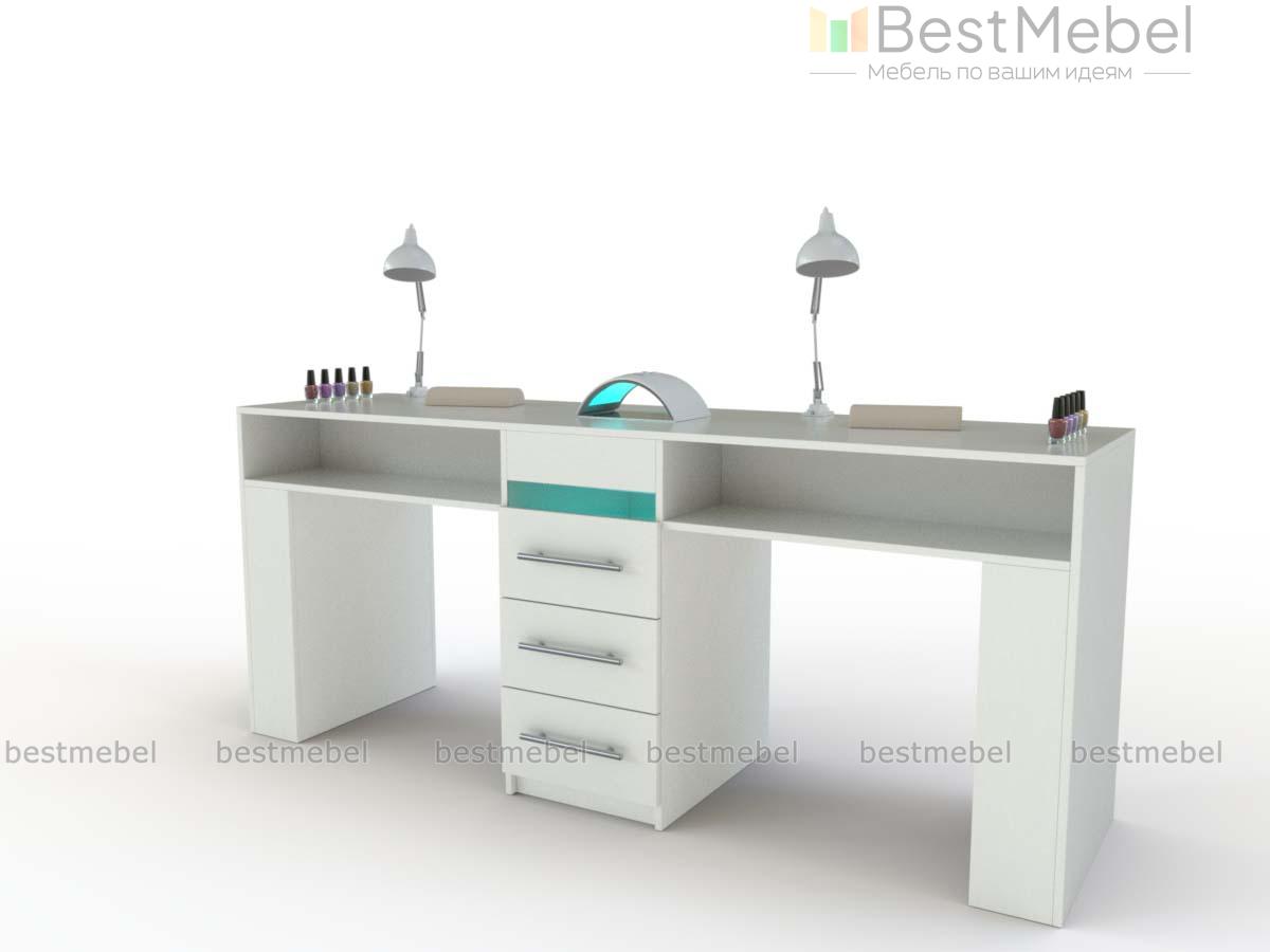 Маникюрный стол Джерси BMS предназначен для одновременной работы двух мастеров и значительно экономит пространство. Помимо широкой рабочей поверхности модель оборудована индивидуальными открытыми полками и общей тумбой с тремя выдвижными ящиками для хранения расходных материалов и инструментов. Лаконичный и выполненный в нейтральном белом цвете, столик универсален для современных интерьеров. Купить маникюрный стол Джерси BMS по доступной цене вы сможете в нашем интернет-магазине.