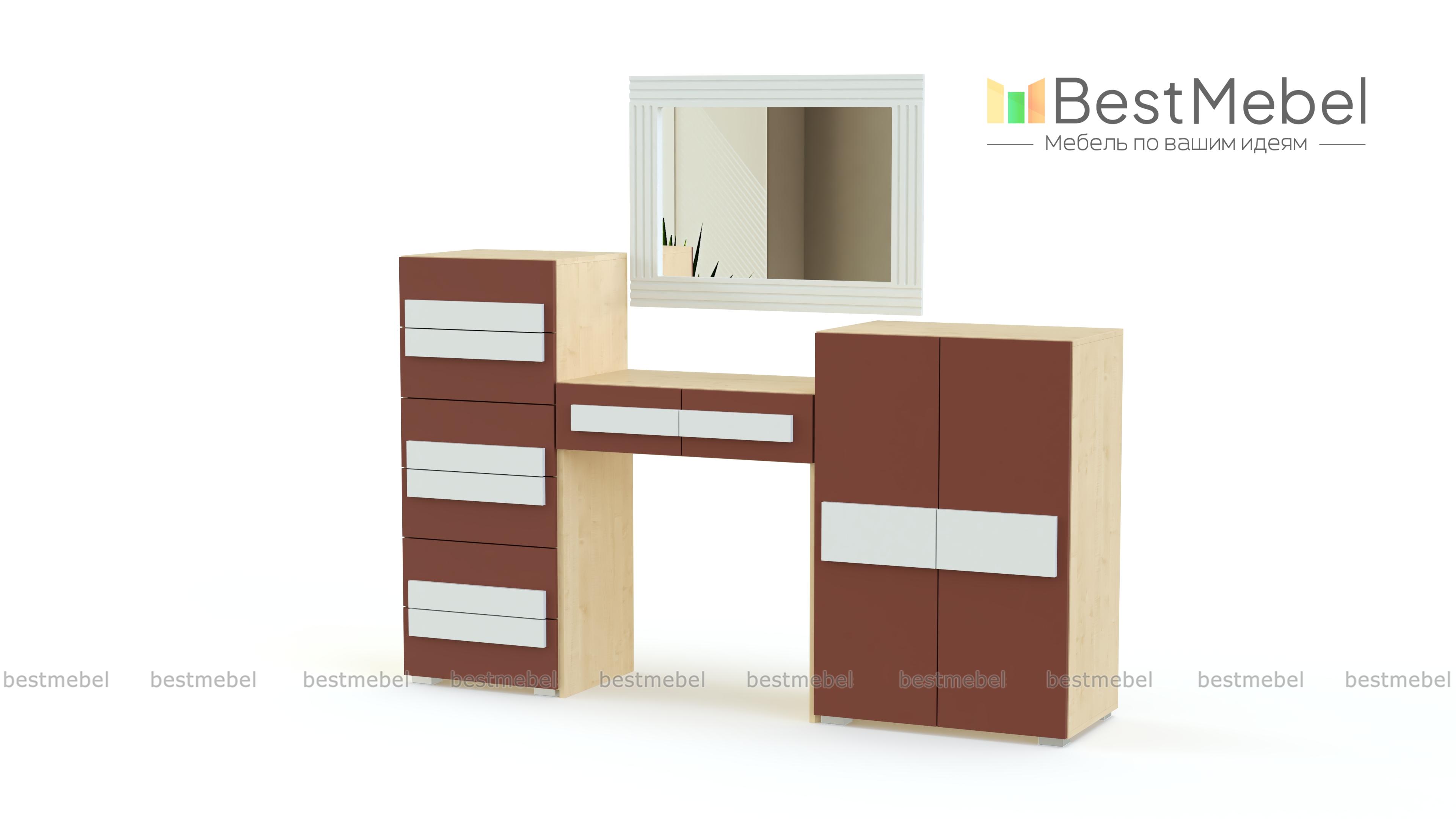 Туалетный стол Пресли 1 BMS – практичное дополнение и элемент дизайна современного спального интерьера. Эффектный геометричный столик выполнен в контрастном сочетании графитового оттенка и универсального белого. Модель оборудована всем необходимым для ухода за собой и хранения косметики, украшений и аксессуаров – двумя вместительными тумбами, столешницей, дополненной выдвижными ящиками, и зеркалом в широкой рамке. Купить туалетный стол Пресли 1 BMS по отличной цене вы сможете в нашем интернет-магазине.