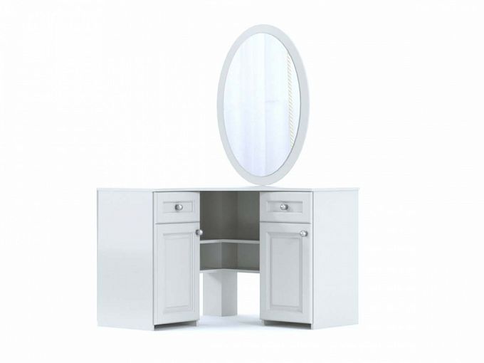 Туалетный стол угловой Софья 5 BMS будет легко вписать в интерьер небольших спален благодаря практичной конструкции. Изящная классическая модель выполнена в белом цвете и декорирована по фасаду фрезеровкой. Столик оборудован эргономичной столешницей, двумя тумбами с выдвижными ящиками и распашными отделениями для удобного хранения уходовых средств и аксессуаров и открытыми нижними полками. На столешнице располагается большое овальное зеркало в рамке. Купить туалетный стол угловой Софья 5 BMS вы сможете в нашем интернет-магазине по лучшей цене.