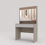 Практичная и доступная по цене модель современного дизайна. Благодаря конструкции этот туалетный столик способен разместить множество мелочей. Для этого он оборудован не только стандартным выдвижным ящиком, но и шкафчиком с четырьмя полками и распашными зеркальными дверцами над столешницей. Выполняется туалетный столик Элен BMS в различных цветах под массив дерева с контрастными фасадами и минимумом декоративных элементов. Оптимальные размеры модели вы сможете подобрать в нашем интернет – магазине.
