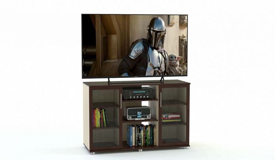 Тумба под ТВ 6G BMS – это еще и стильная витрина для ваших любимых книг, посуды и приятных мелочей. Центральная секция с двумя полками и частично открытой для вывода проводов задней стенкой дополнена распашными застекленными отделениями, расположенными по бокам. Благодаря разнообразию оттенков вы сможете подобрать максимально сочетающийся с мебелью и отделкой стен вариант. Купить тумбу под ТВ 6G BMS по доступной цене приглашаем в наш интернет-магазин.
