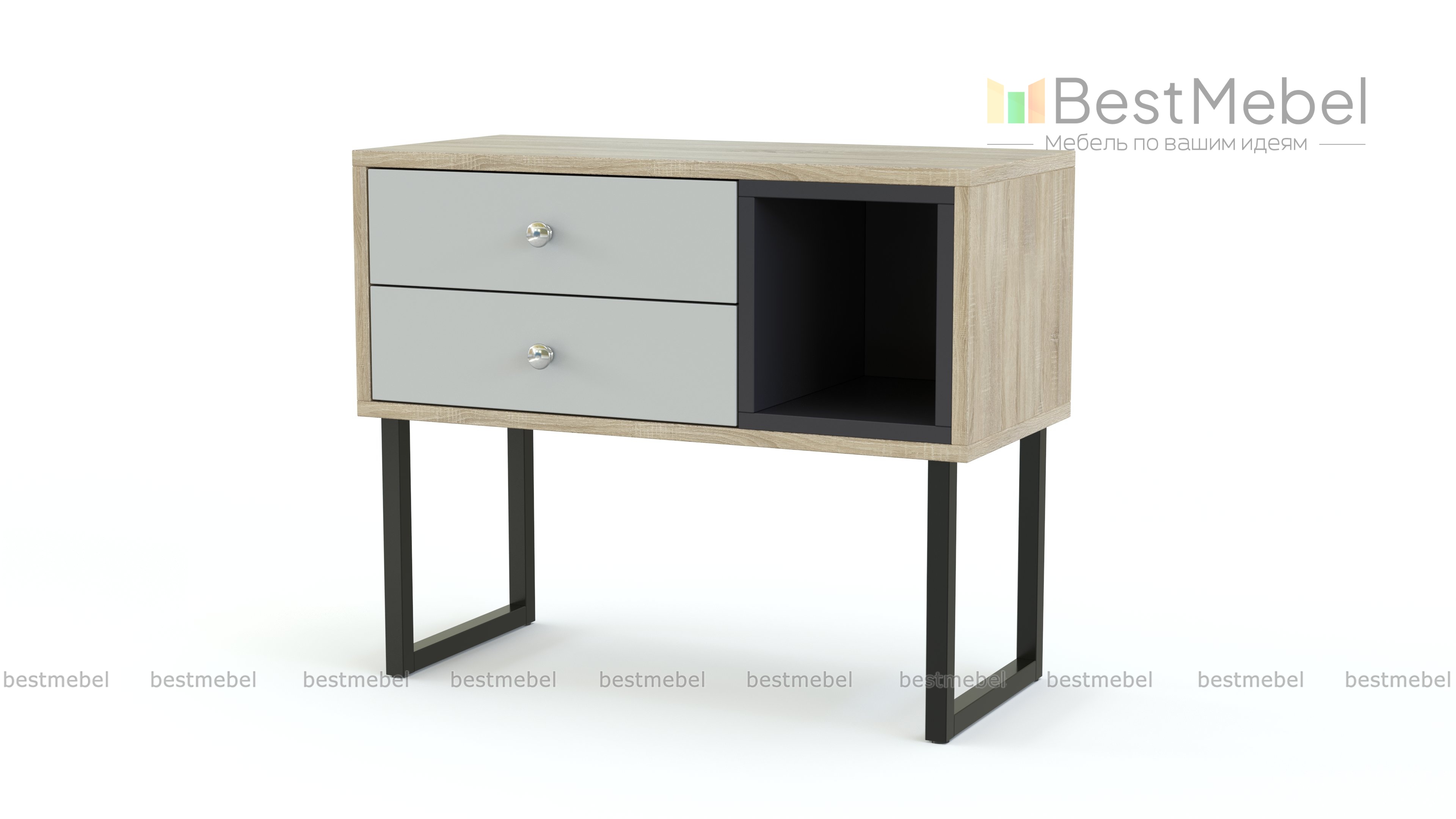 Тумба прикроватная Анталия 11 BMS с корпусом в древесных тонах и выделенной темным цветом нишей просто создана для уютных современных спален. Широкая низкая модель с просторной столешницей оборудована двумя выдвижными ящиками и открытой секцией для удобного хранения важных мелочей, книг и журналов. Лаконичный корпус располагается на высоких металлических ножках, придающих конструкции легкость и устойчивость. Купить тумбу прикроватную Анталия 11 BMS вы сможете на сайте нашего интернет-магазина.