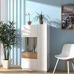 Тумба-витрина Лайт 6 BMS выглядит невесомой благодаря расположению на высоком цоколе и исполнению в белом глянце. Максимально лаконичная, высокая тумба оборудована просторными полками и распашными дверцами – глухой и застекленной. Витрина со светодиодной подсветкой и декоративной вставкой теплого древесного оттенка эффектно подчеркнет выставленные предметы – посуду, памятные вещи, интерьерные украшения или книги. Купить тумбу-витрину Лайт 6 BMS приглашаем в наш интернет-магазин.